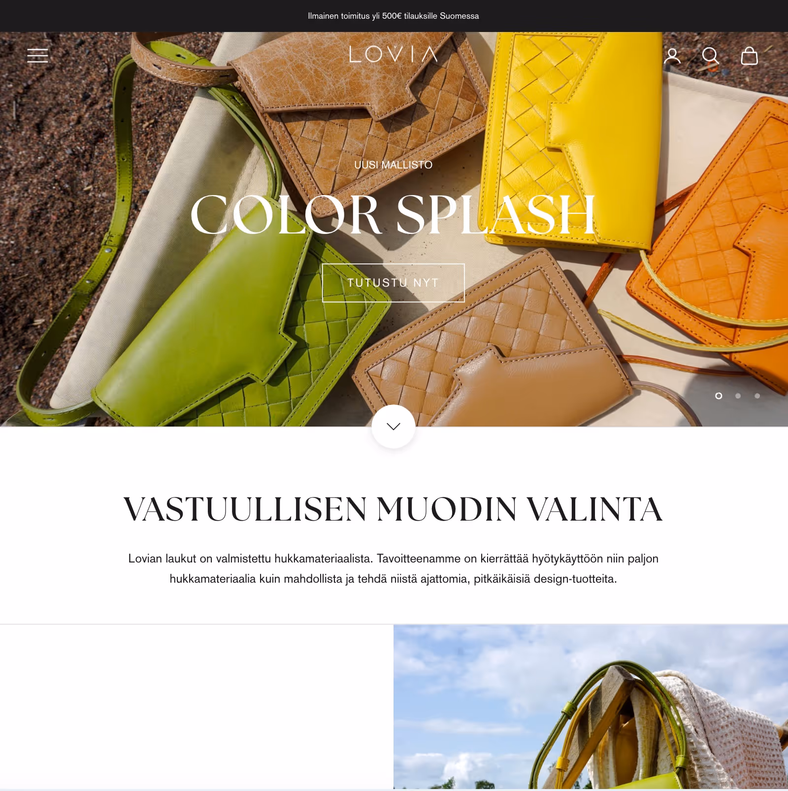 Lovia flyttade från WooCommerce till Shopify. Kärnan i den nya webbutiken är starka varumärkesvärden, en visuell identitet och unika transparenta element.