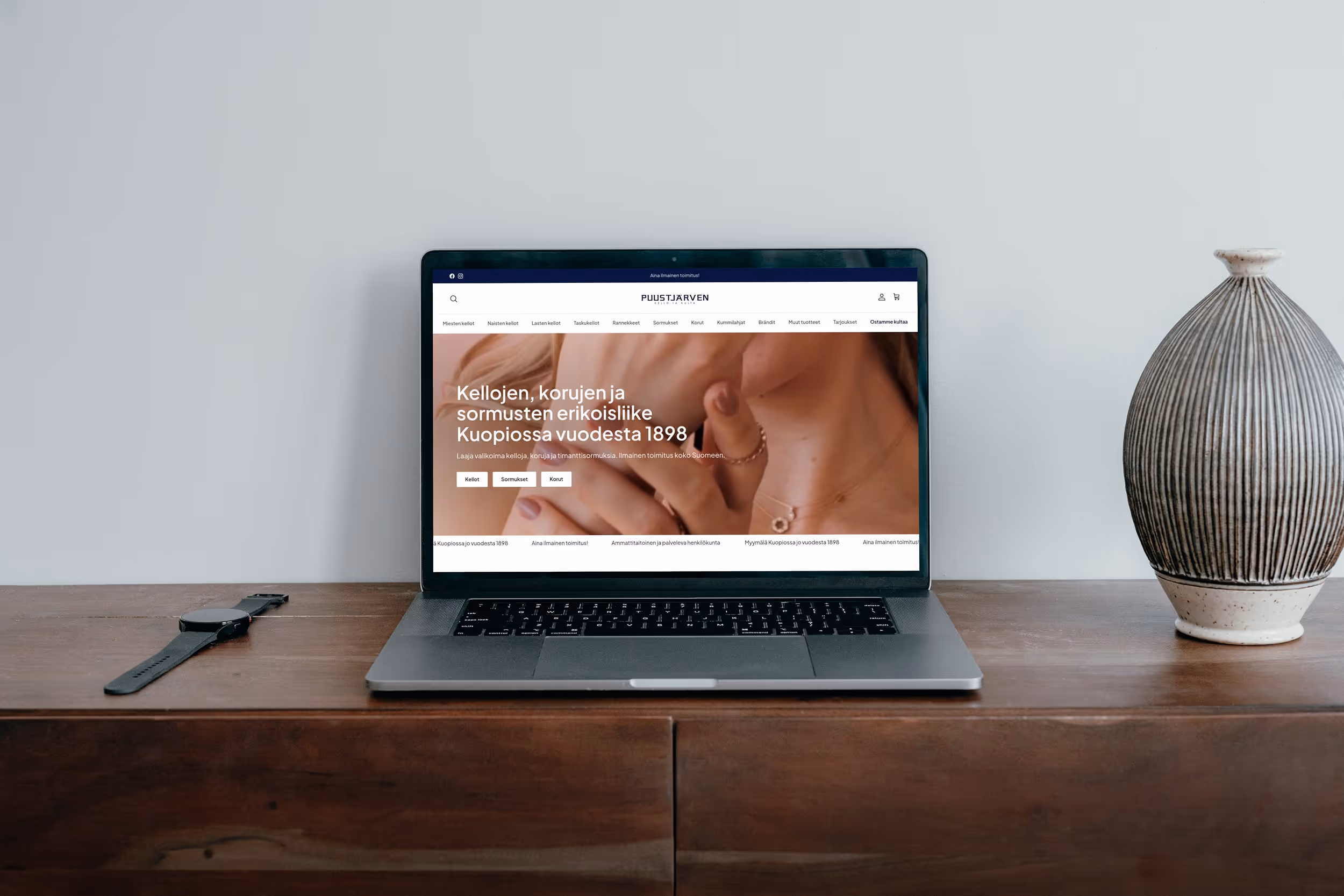 Puustjärvi Kello & Kulta flyttade från Nethit-plattformen till Shopify. Nu fungerar både webbutiken och kassasystemet i den fysiska butiken sömlöst och på ett modernt sätt.